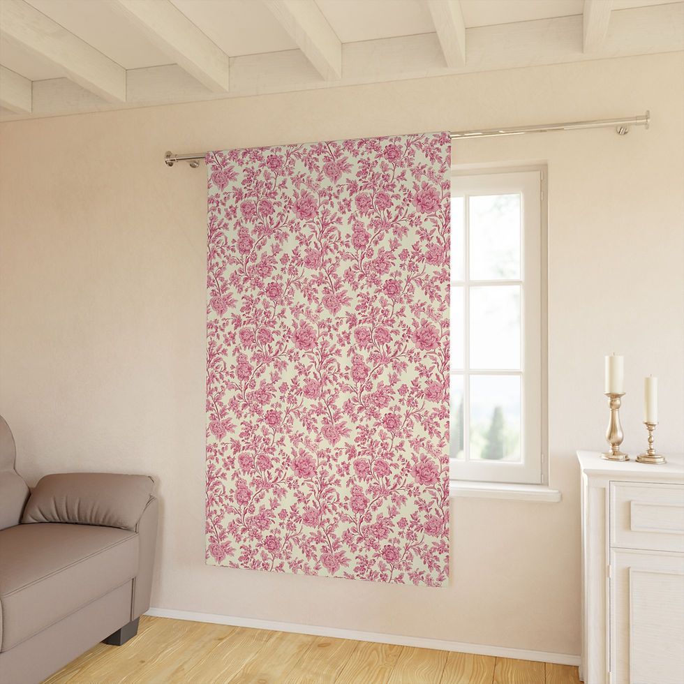 Dark Blue Floral Toile Window Curtains (1 Piece)